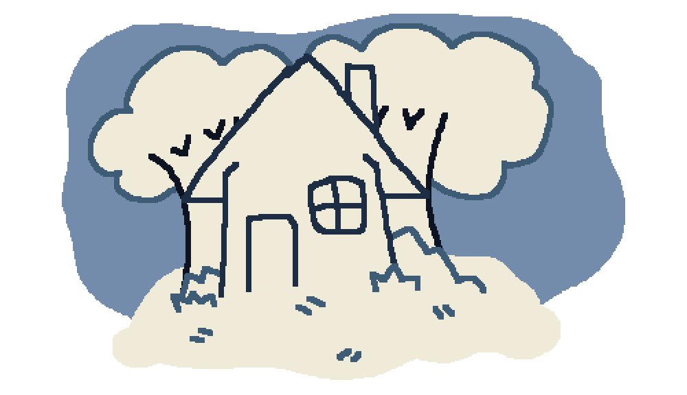 Wow, a house. Looks pretty small. Do you want to go inside?